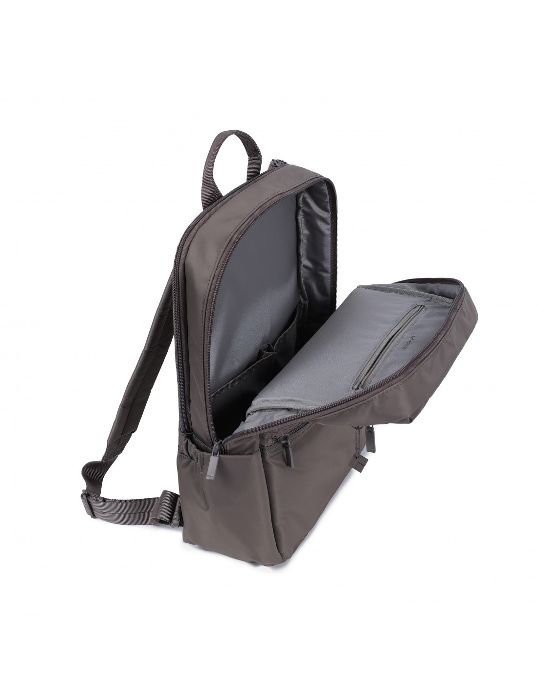 Il est doté d?un compartiment rembourré RFID pouvant accueillir un ordinateur portable 15,6", ainsi que d?un espace adapté aux documents A4. Son organisation intérieure intelligente comprend une poche RFID sécurisée, une poche pour téléphone et un crochet pour clé. À l?extérieur, il dispose de trois poches zippées, d?une poche latérale élastique et d?un porte-bouteille pour une accessibilité optimale.