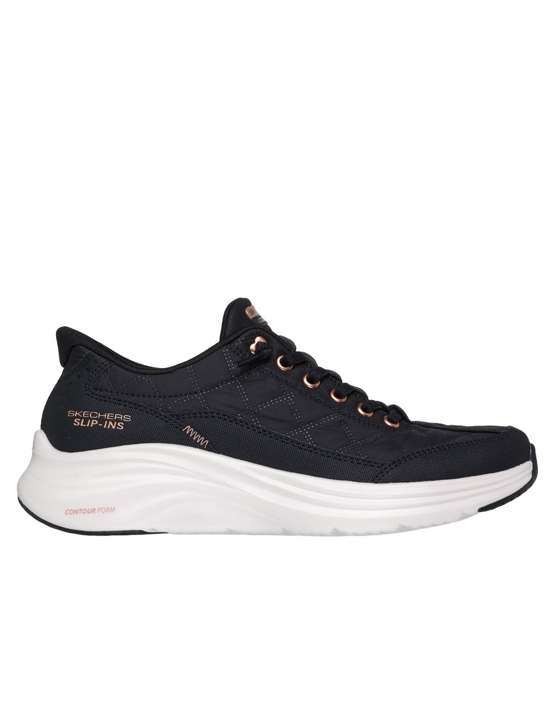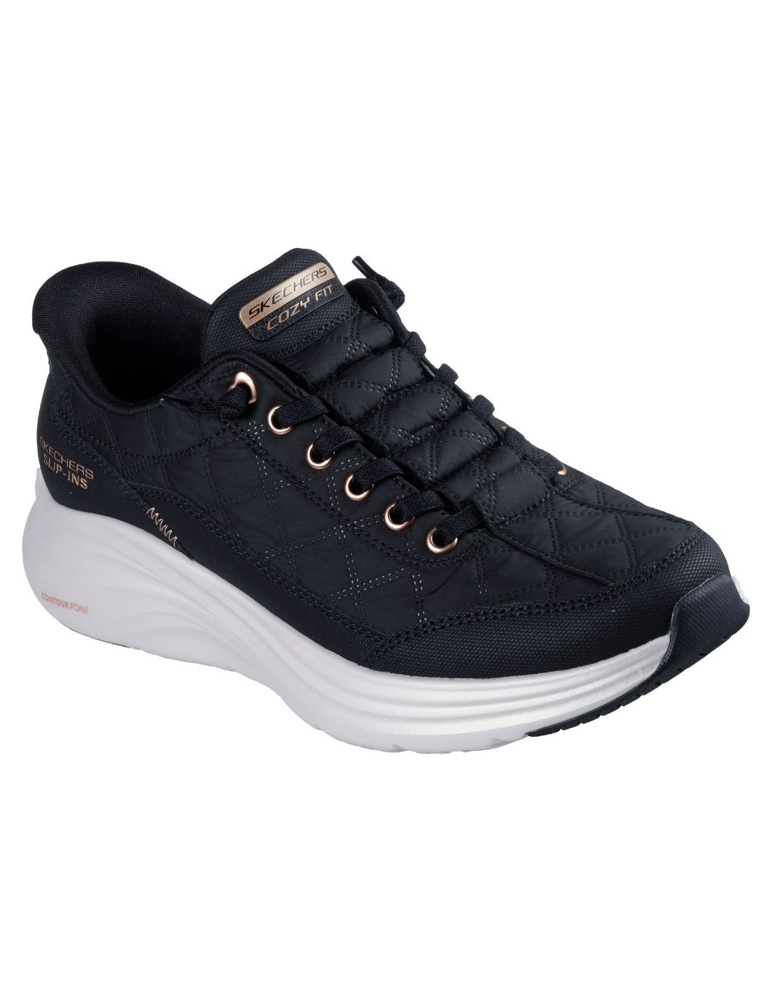 Skechers 150413 ? Hands Free Slip-ins® : Contour Foam? ? Cozy Fit? Golden Hour combine confort premium, praticité et style moderne. Grâce à la technologie Hands Free Slip-ins®, cette chaussure s?enfile facilement sans utiliser les mains, tout en assurant un maintien optimal du talon grâce au système exclusif Heel Pillow?.