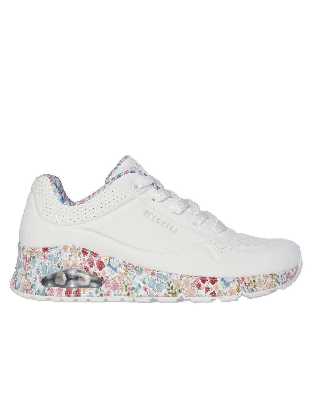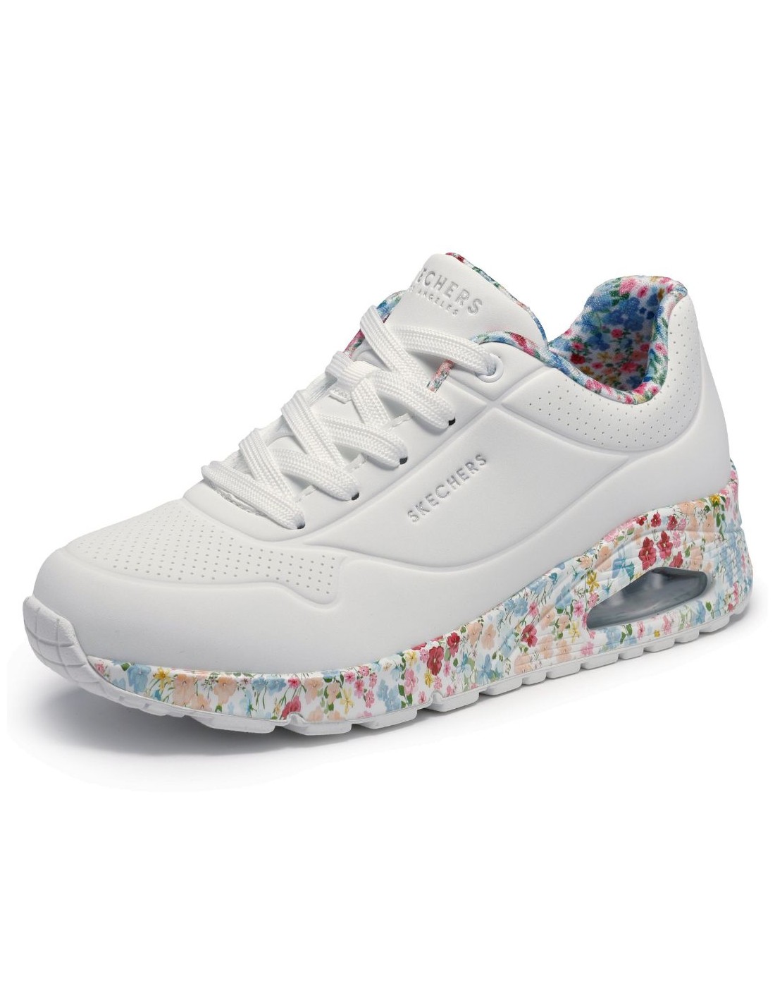 La Skechers 155583 WMLT ? Uno Majestic Garden est une basket femme multicolore au design floral moderne, équipée d?une semelle Air-Cooled Memory Foam? et d?un coussin d?air visible. Confortable, légère et tendance, elle est parfaite pour le quotidien.