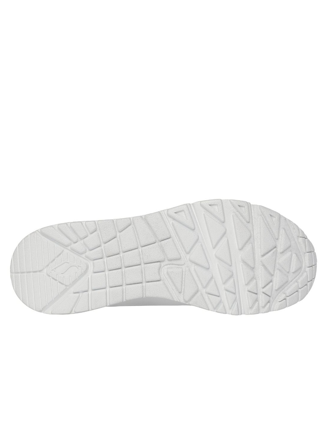 La chaussure repose sur la semelle emblématique de la collection Skechers UNO, avec un amorti Air-Cooled Memory Foam? pour un confort moelleux et respirant, et une semelle intermédiaire à coussin d?air visible, offrant un excellent amorti lors de la marche. Sa tige en matériau synthétique lisse et textile assure une bonne durabilité tout en restant légère.