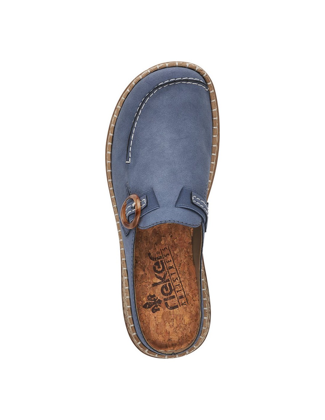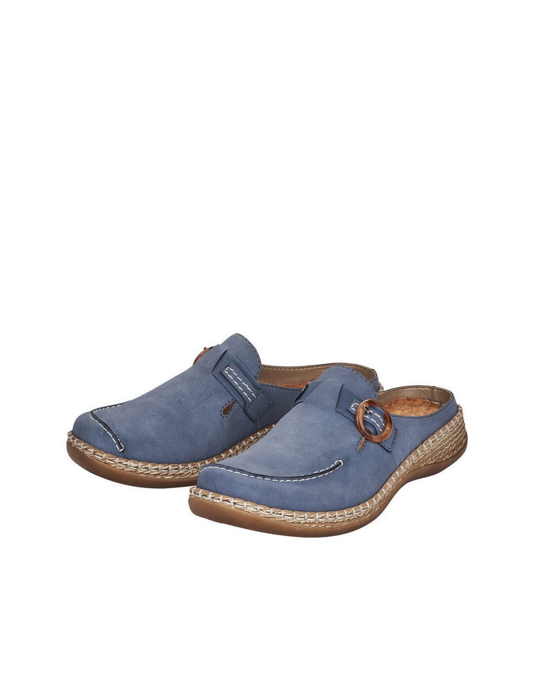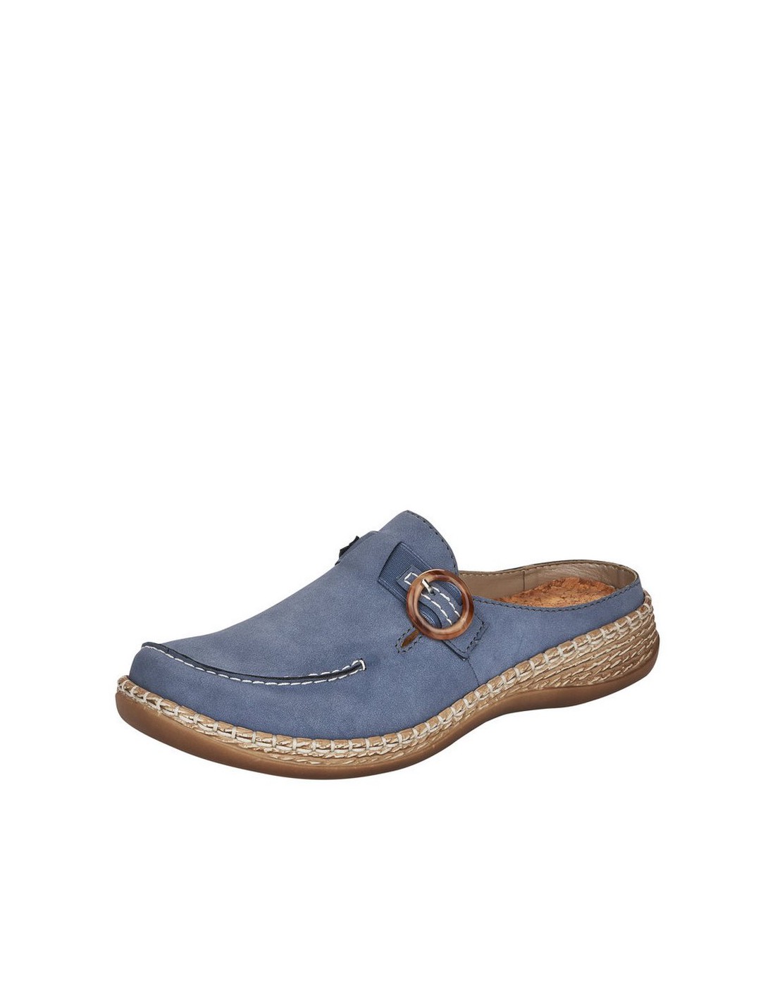 Style sabot ce modèle bleu ouvert derrière s'enfile facilement ! Doté d'un chaussant particulièrement large ce modèle convient aux pieds difficiles. Le bonheur assuré avec le modèle 46494-14 RIEKER. La semelle intérieure ultra confort et épaisse est souple. Le confort RIEKER garantie pour ce modèle anti-stress au look décontracté.
