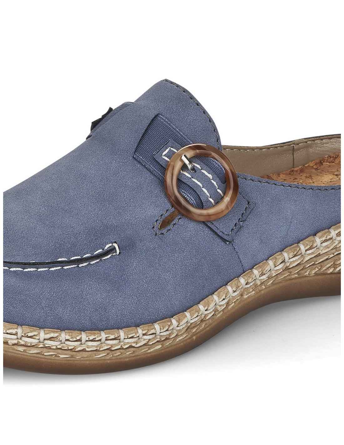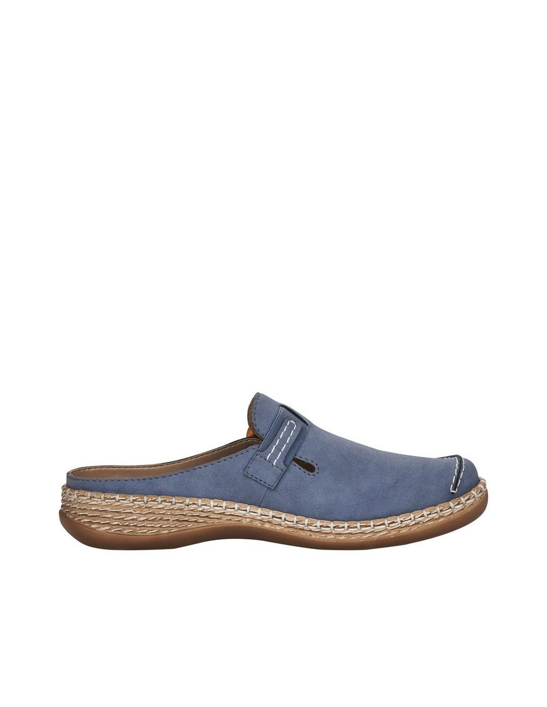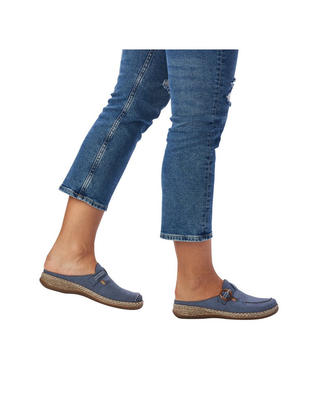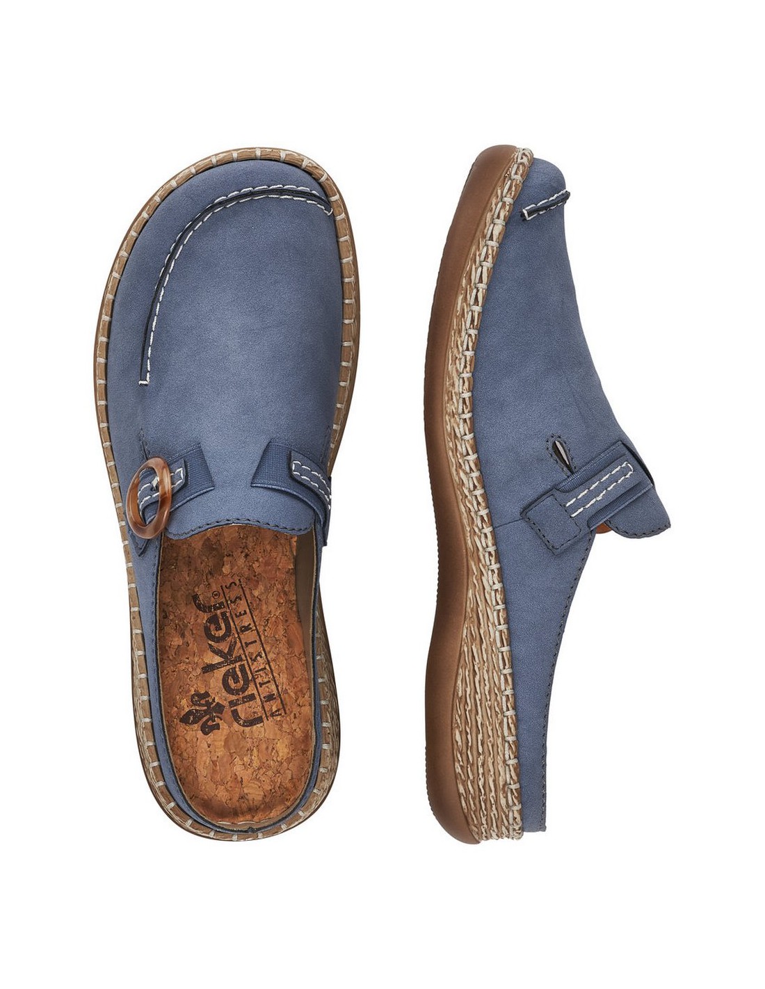 Style sabot ce modèle bleu ouvert derrière s'enfile facilement ! Doté d'un chaussant particulièrement large ce modèle convient aux pieds difficiles. Le bonheur assuré avec le modèle 46494-14 RIEKER. La semelle intérieure ultra confort et épaisse est souple. Le confort RIEKER garantie pour ce modèle anti-stress au look décontracté.