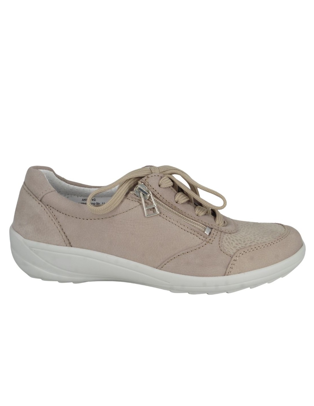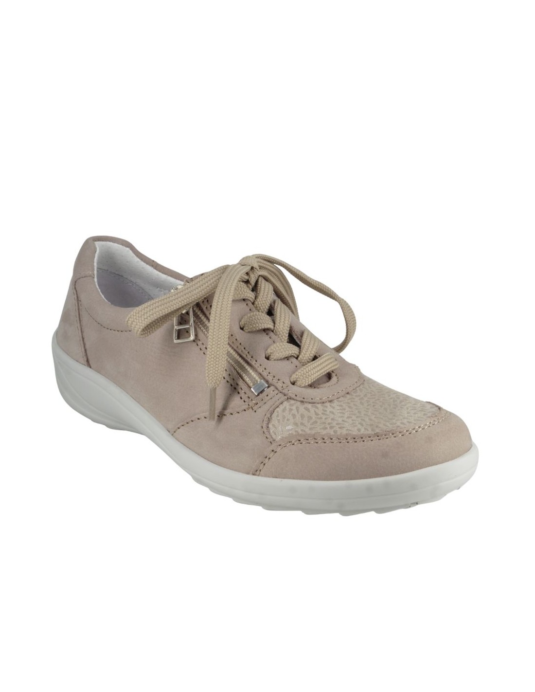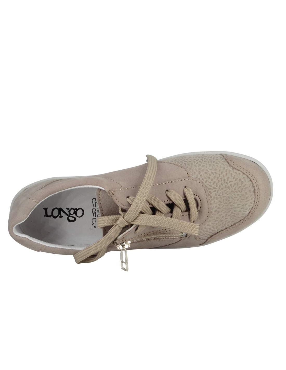 Cette basket 6734 en cuir nubuck beige de la marque LONGO est un modèle aussi élégant que confortable. Dotée de lacets et d'un zip latéral pratique, elle assure un excellent maintien du pied tout en facilitant l'enfilage. Son design sport-ville tendance s?adapte à toutes les occasions, que ce soit pour une balade en ville ou une longue journée de marche. Vous serez séduite par sa souplesse et l?amorti exceptionnel de sa semelle. De plus, sa semelle intérieure est amovible, offrant un confort personnalisé et la possibilité d?y insérer une semelle orthopédique si nécessaire.