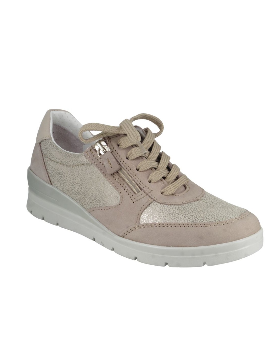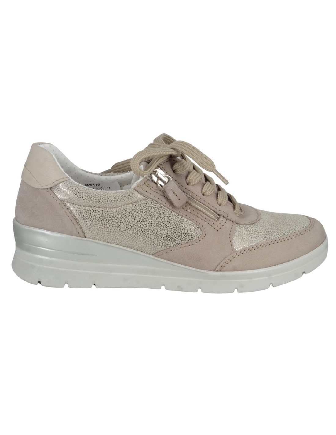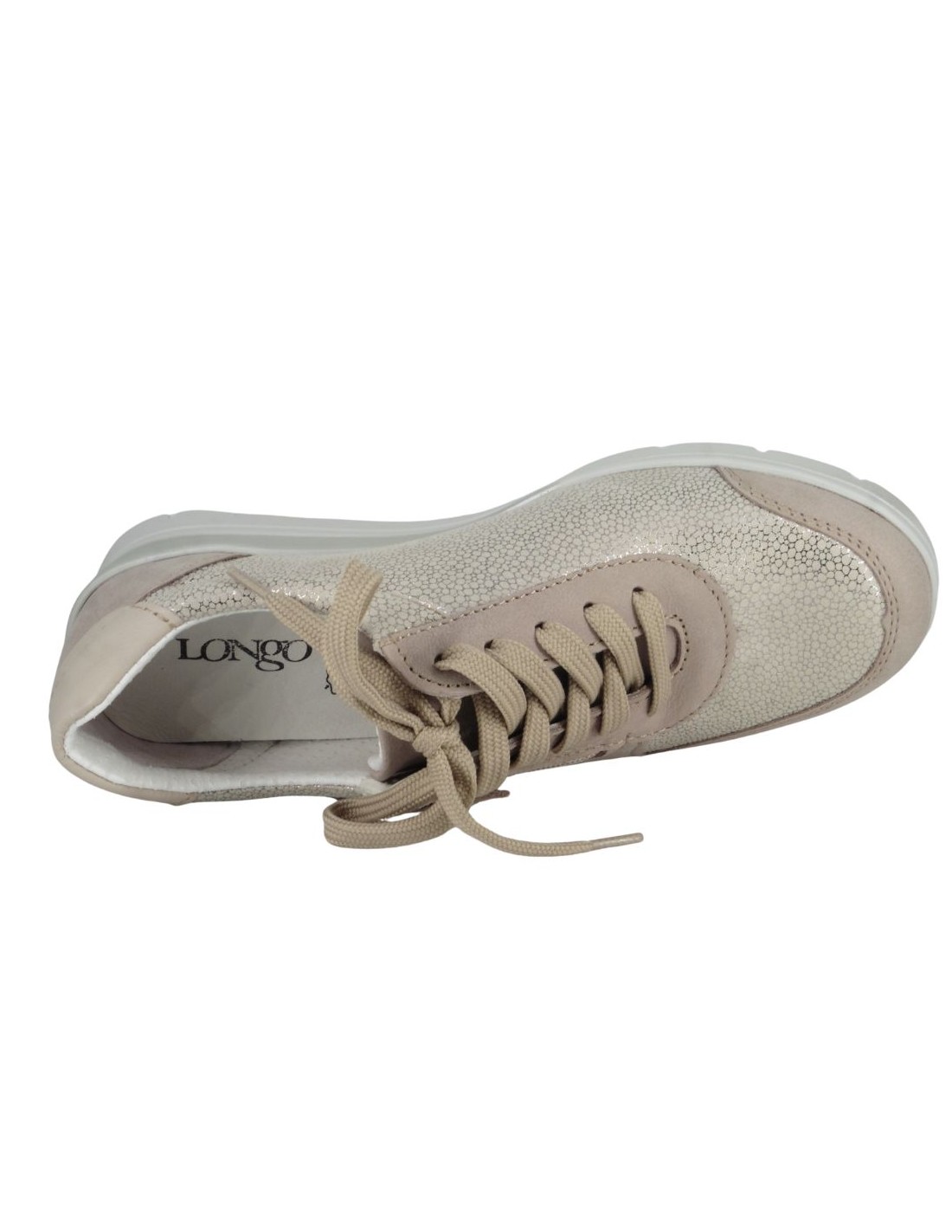 Cette basket en cuir 6738 nubuck beige de la marque LONGO est un modèle aussi élégant que confortable. Dotée de lacets et d'un zip latéral pratique, elle assure un excellent maintien du pied tout en facilitant l'enfilage. Son design sport-ville tendance s?adapte à toutes les occasions, que ce soit pour une balade en ville ou une longue journée de marche. Vous serez séduite par sa souplesse et l?amorti exceptionnel de sa semelle. De plus, sa semelle intérieure est amovible, offrant un confort personnalisé et la possibilité d?y insérer une semelle orthopédique si nécessaire. Son talon compensé de 4 cm apporte une légère élévation pour un meilleur confort et une touche d?élégance supplémentaire.