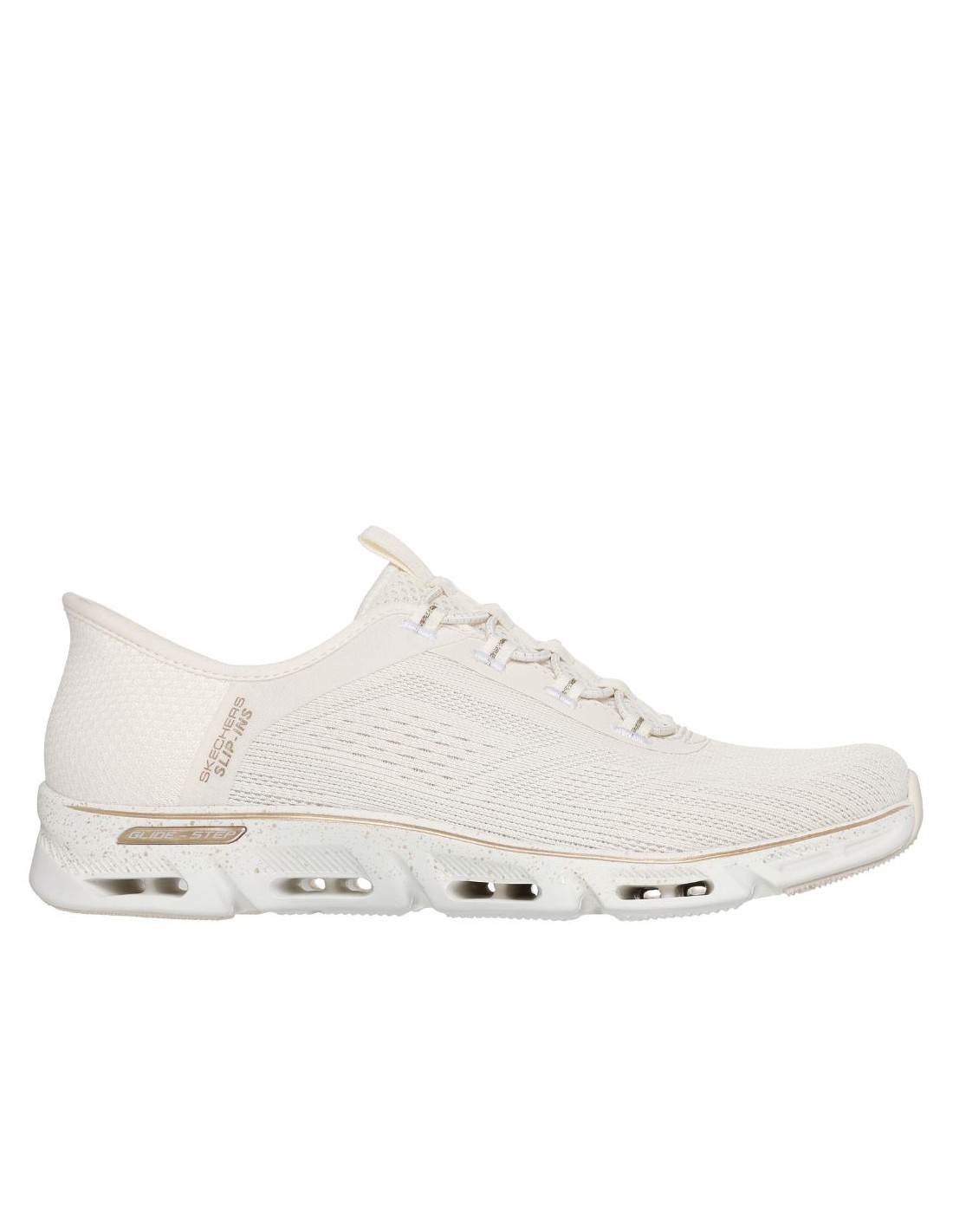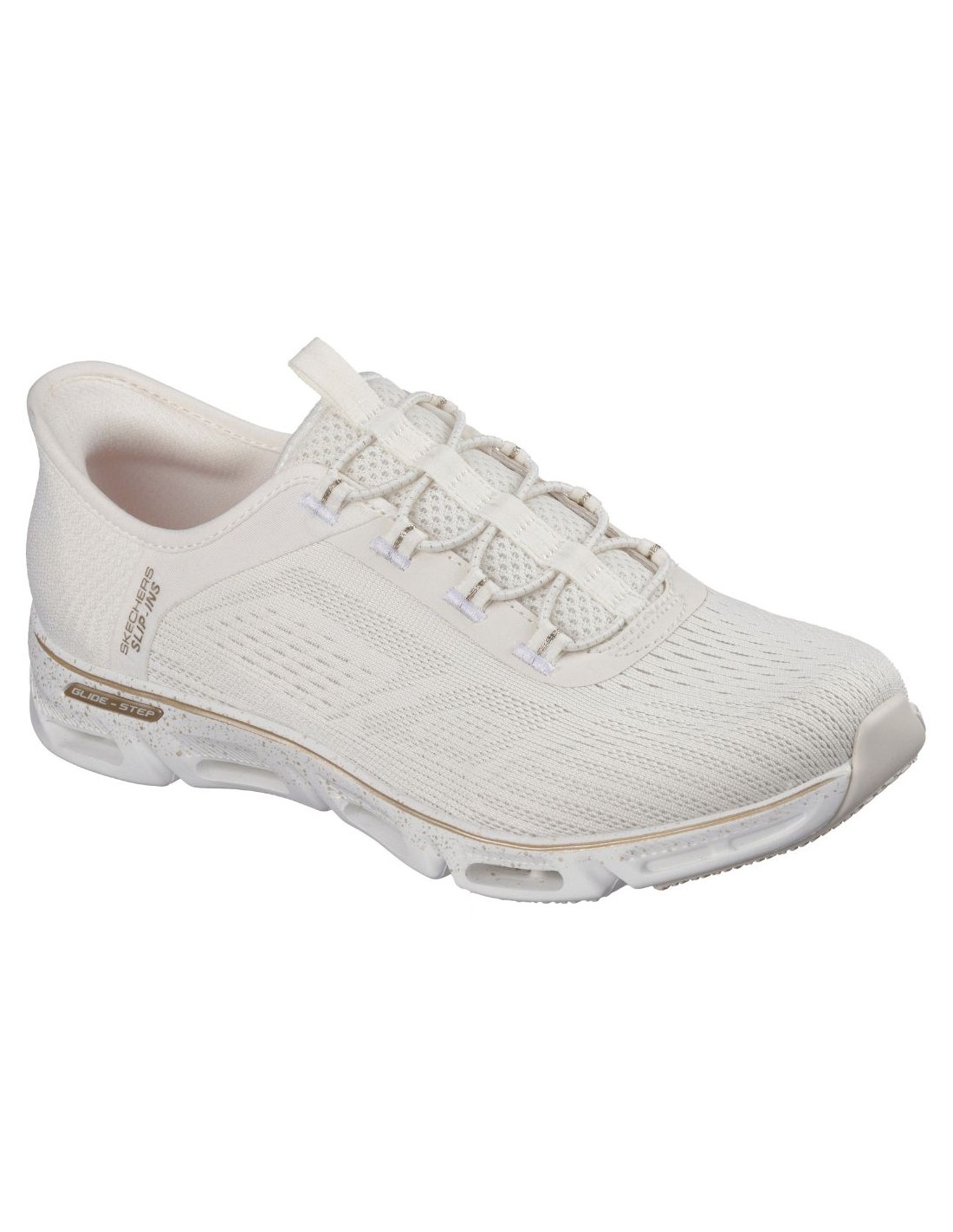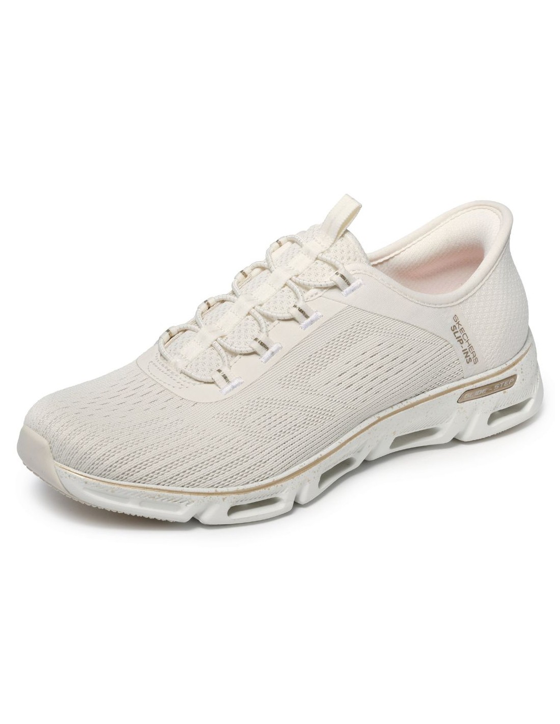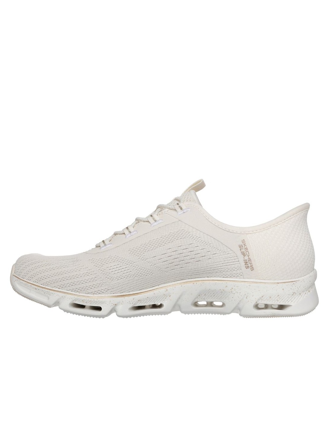 La Skechers 104610 NTGD ? Hands Free Slip-ins Glide-Step Gratify Pace offre un confort moderne et pratique, conçu pour un usage quotidien actif. Grâce à la technologie Hands Free Slip-ins®, la chaussure s?enfile facilement sans les mains, tout en assurant un maintien sécurisé grâce au Heel Pillow?, un renfort intérieur qui stabilise le talon.
